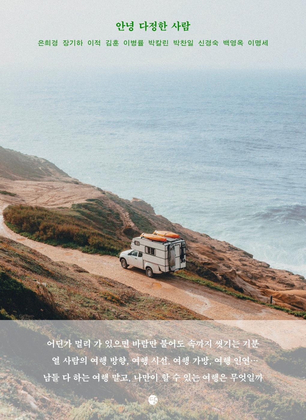 열 명의 각계각층 명사들이 세계 각국으로 떠난 여행 이야기 『안녕 다정한 사람』이 새 옷을 입었다. 어딘가로 훌쩍 떠나고픈 마음을 대변하듯 표지 가운데에서 캠핑카가 바닷가를 힘차게 달리고 있다. 창문을 열고 시원한 바닷바람을 맞으며 답답했던 속을 씻어내는 장면이 절로 떠오른다.
