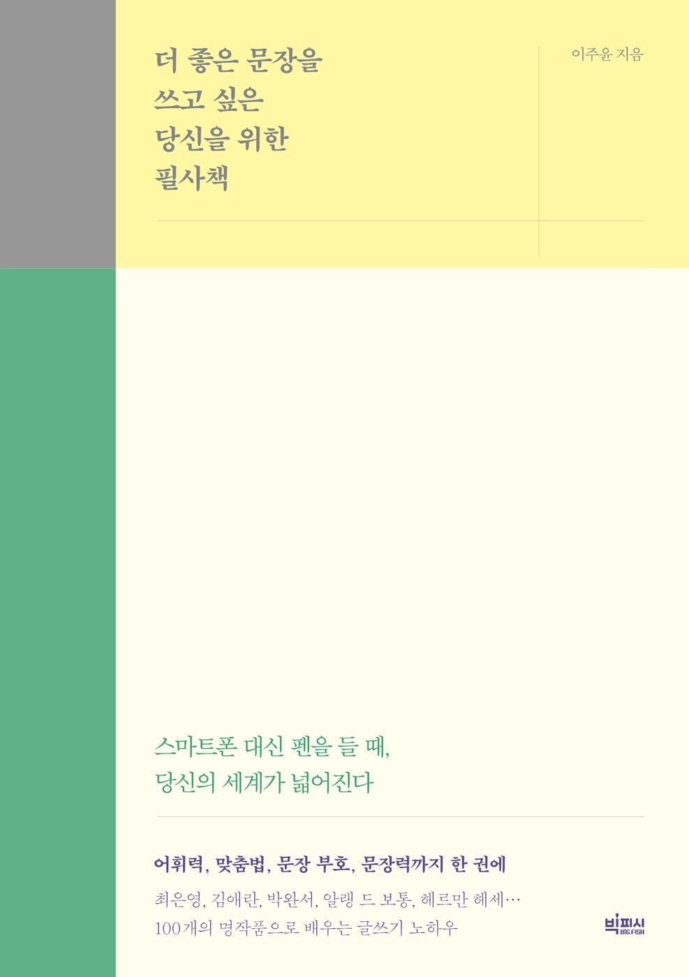 『요즘 어른을 위한 최소한의 문해력』, 『요즘 어른을 위한 최소한의 맞춤법』 등 10만 독자가 선택한 작가 이주윤이 그만의 필사 글쓰기 노하우를 담은 『더 좋은 문장을 쓰고 싶은 당신을 위한 필사책』을 출간했다. 그 어느 때보다 문자나 메신저, 메일로 소통하는 비중이 높아진 지금, 정확하게 표현하여 원하는 것을 얻기 위한 ‘문장력’이 더욱 요구되고 있다. 이를 키우는 데 꾸준히 읽고 쓰는 것보다 더 좋은 방법이 있을까?