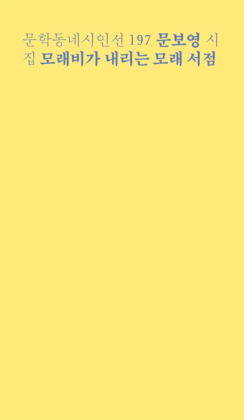 2016년 중앙신인문학상으로 등단하고, 이듬해 『책기둥』으로 김수영문학상을 수상한 이래 엉뚱하고 사랑스러운 상상력으로 한국 시의 특별한 고유명이 된 문보영의 세번째 시집 『모래비가 내리는 모래 서점』이 출간되었다. 시의 바깥에서도 문보영은 일상의 다채로운 조각들에 이야기를 덧입혀 하루하루를 새로 살게 하는 산문과 소설, 시쓰기와 독서의 내면을 고스란히 속삭이는 손편지를 발송하는 ‘일기 딜리버리’, 시인으로서의 삶을 매력적으로 채색한 브이로그 등을 통해 많은 독자의 사랑을 받아왔다. 그에게 독자들이 열광한 이유는 자유로운 동시에 세심하며, 자기 자신에게 집중하면서도 삶의 여정에 함께해줄 동지들을 찾아나서는 산뜻한 발걸음을 보여주었기 때문일 것이다. 이번 시집에서도 문보영은 정교하게 묘사된 미니어처처럼 귀여운 존재들을 등장시키고, 그들의 정겨운 움직임과 대화를 통해 자유롭고 즐거운 삶을 연습하는 소중한 선례를 보여준다.